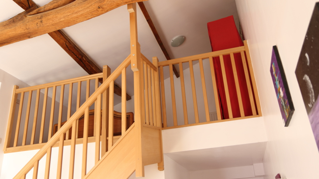 Cette chambre de 19m² au sol dispose d'un lit de 160x200 et d’une mezzanine d’environ 11 m², avec son lit de 140x190. La chambre Glycine permet ainsi d'accueillir facilement quatre personnes.